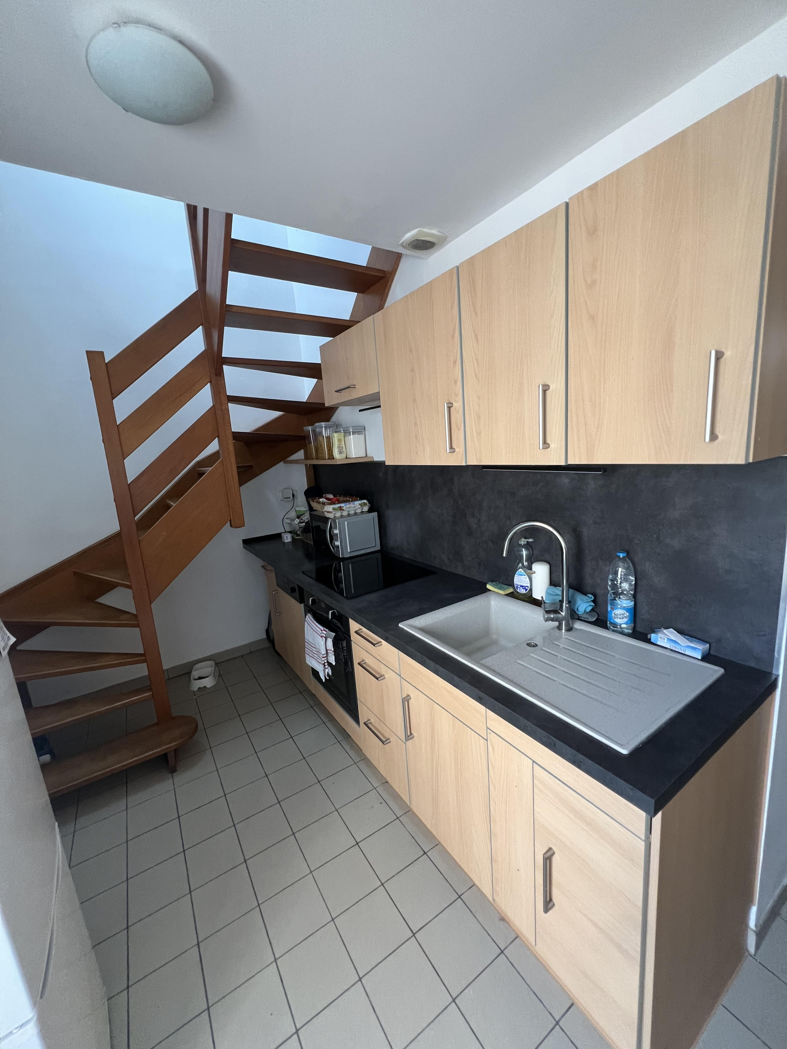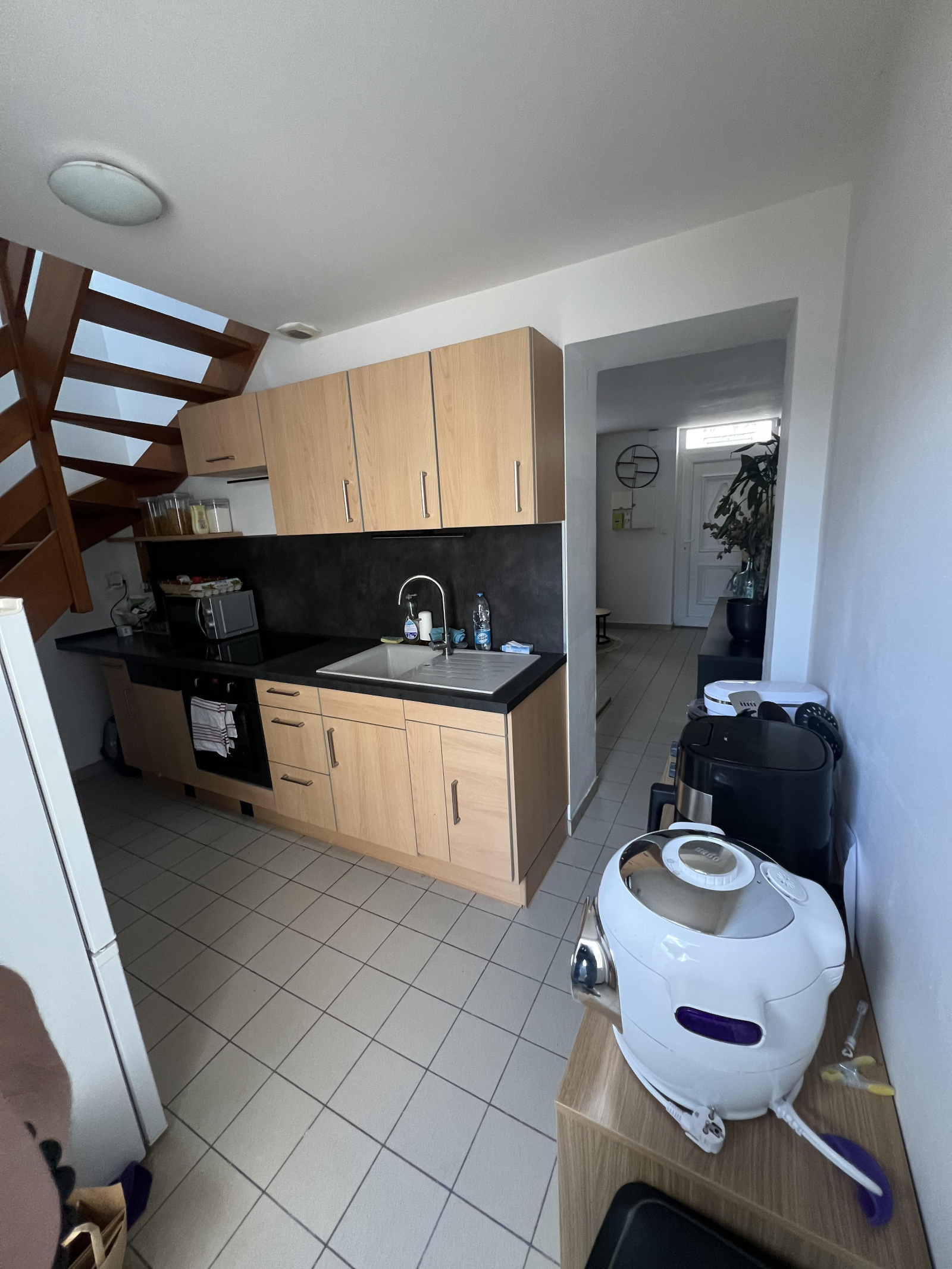Elle se compose d'une piéce de vie, cuisine équipée à étage une chambre, salle de bains, w-c.