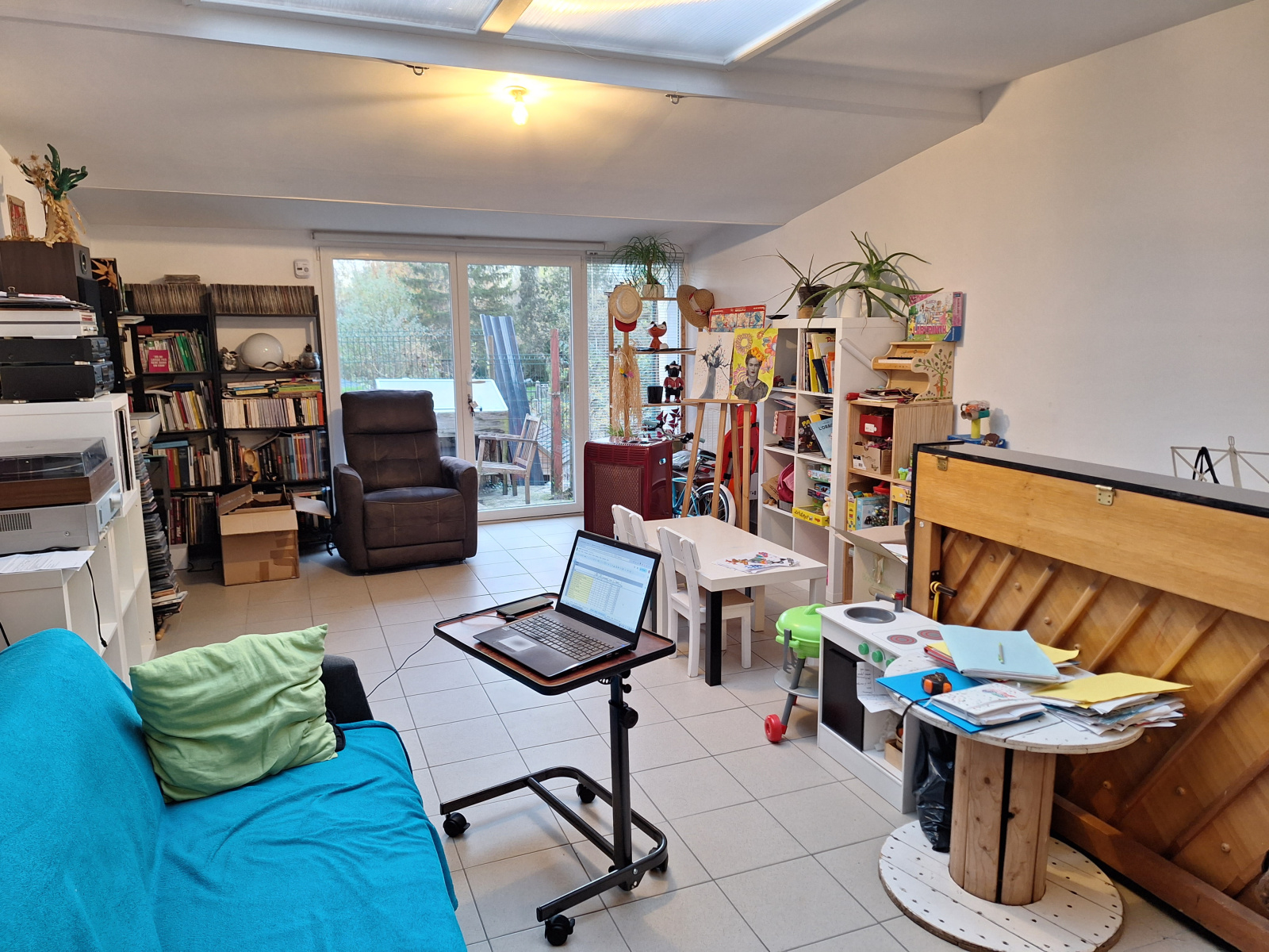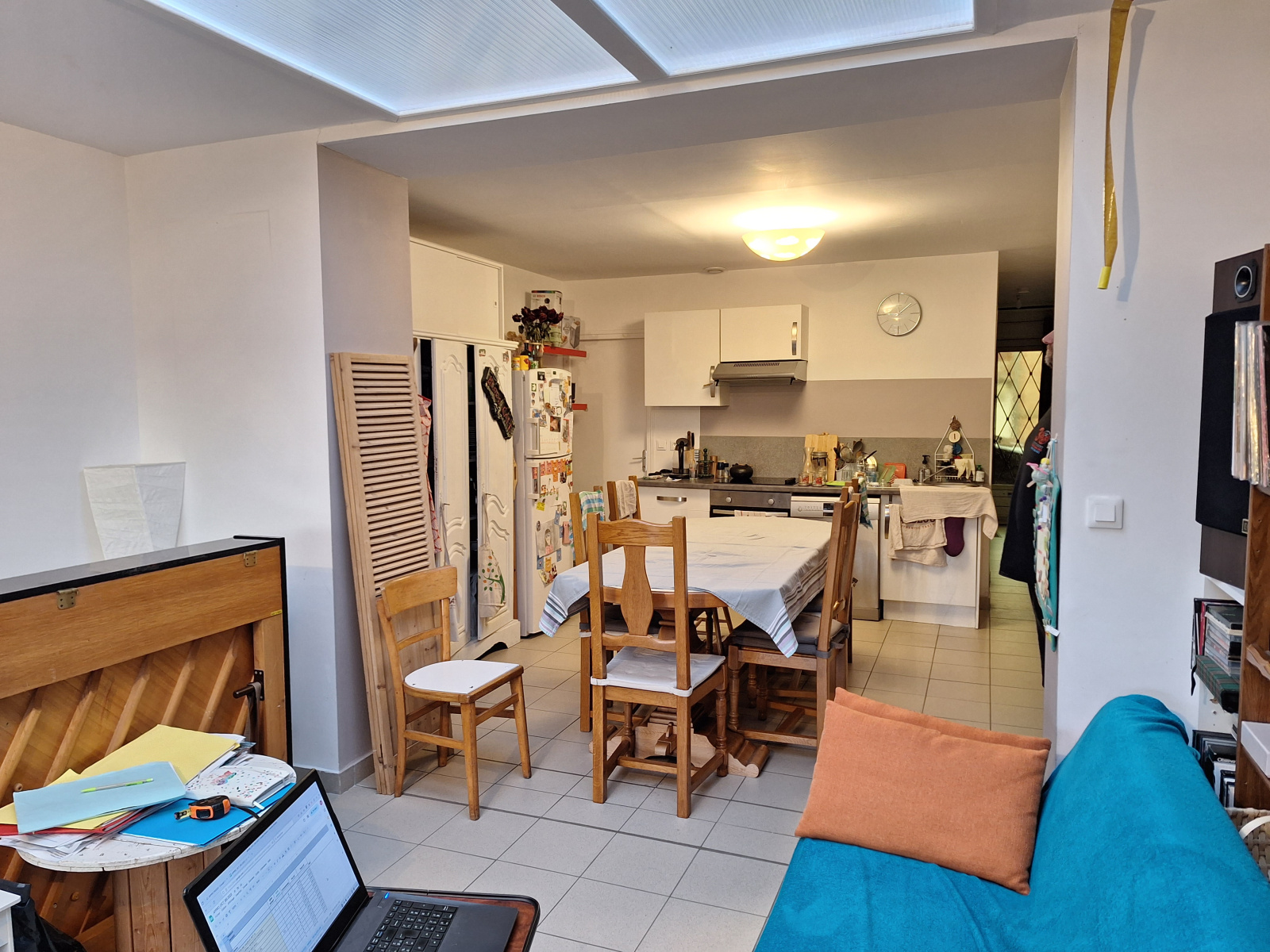 Hall d'entrée, salle de douches, cellier, piéce de vie trés lumineuse avec cuisine équipée.