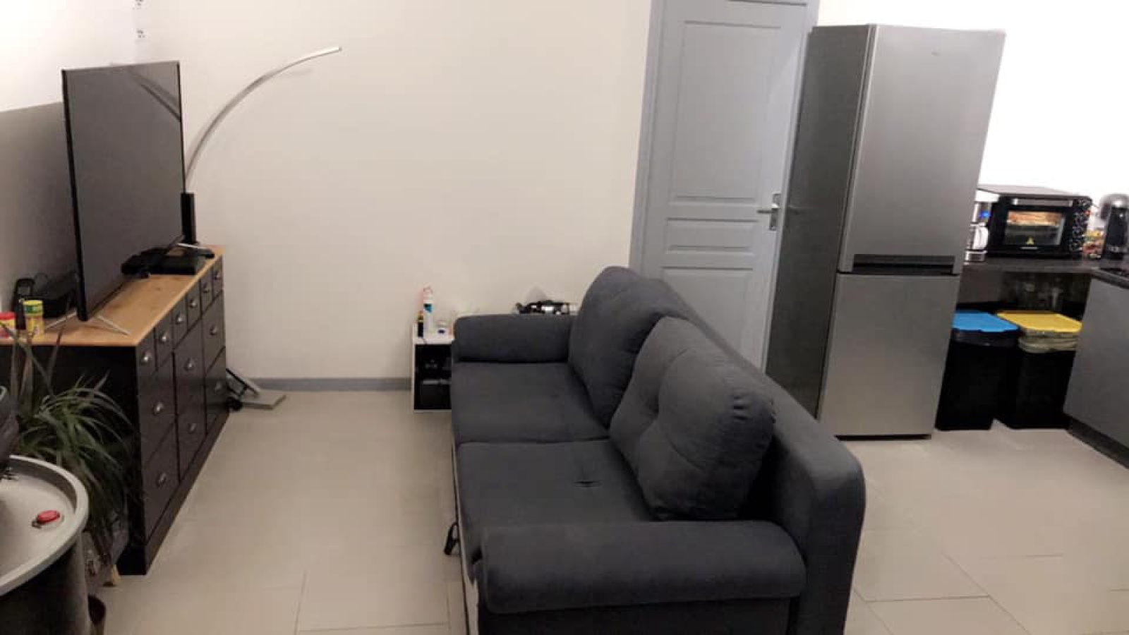- Pièce principale lumineuse avec coin cuisine