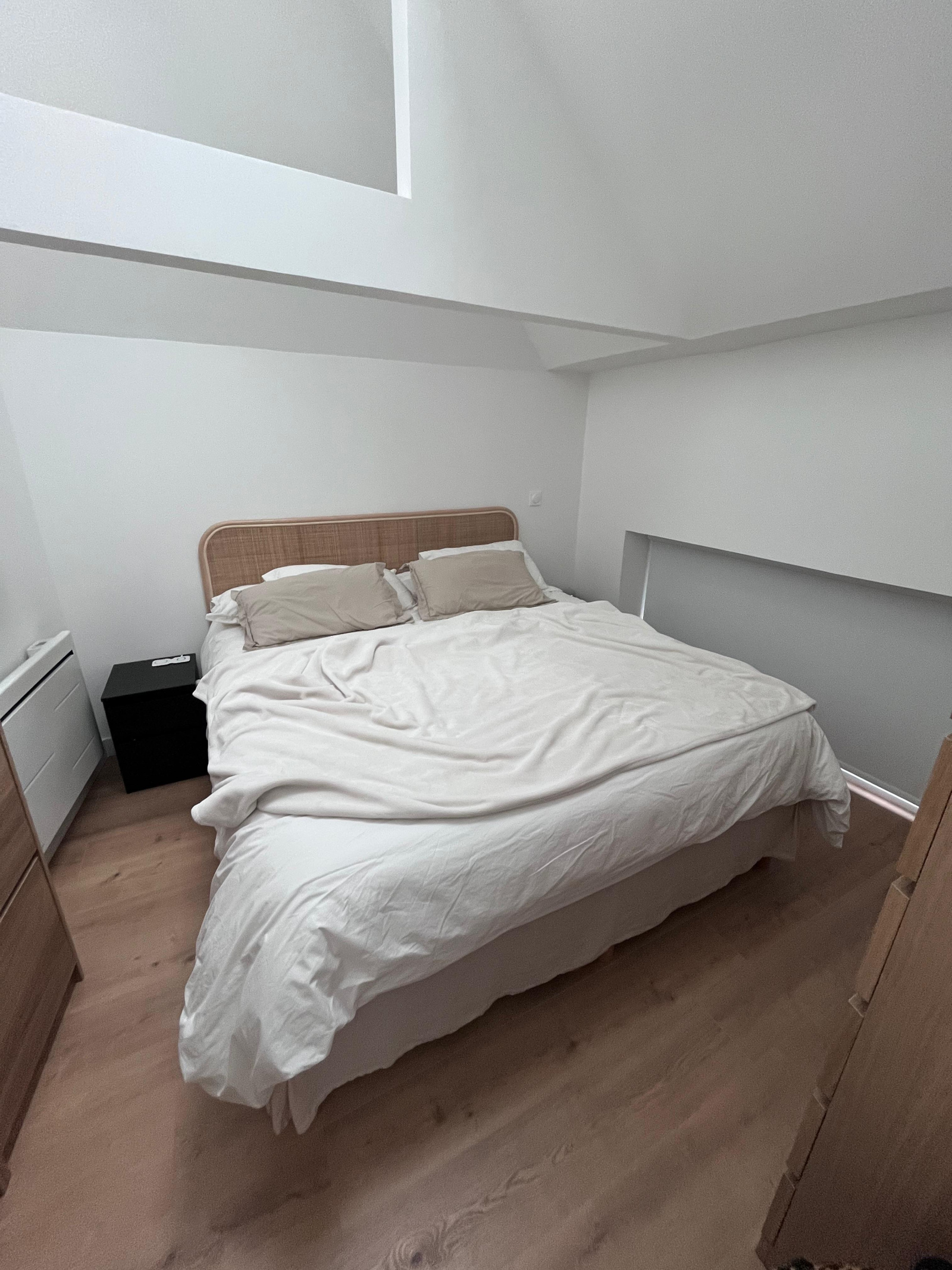 Piéce de vie lumineuse, cuisine équipée, salle de douche, w-c, 2 chambres.