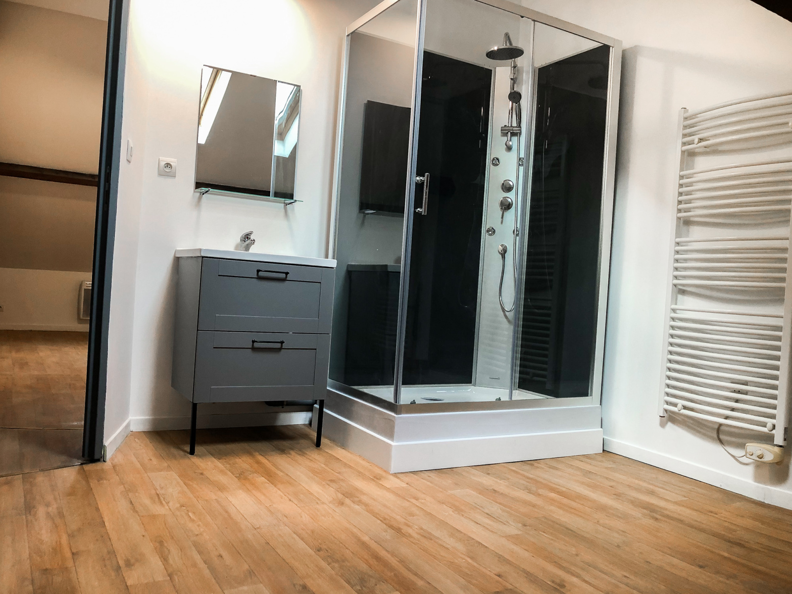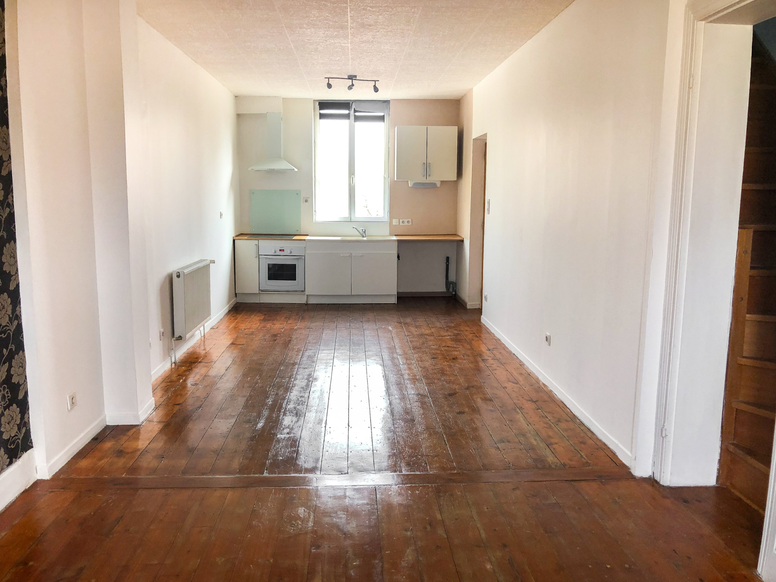 Un appartement en duplex comprenant un séjour avec cuisine ouverte, à l'étage deux belles chambres, un bureau, une salle de douches, W-C. Chauffage central au gaz. Actuellement loué 690€ /mois hors charges + 70€ /mois de charges (chauffage, entretien chausdière, eau, electricité des communs).