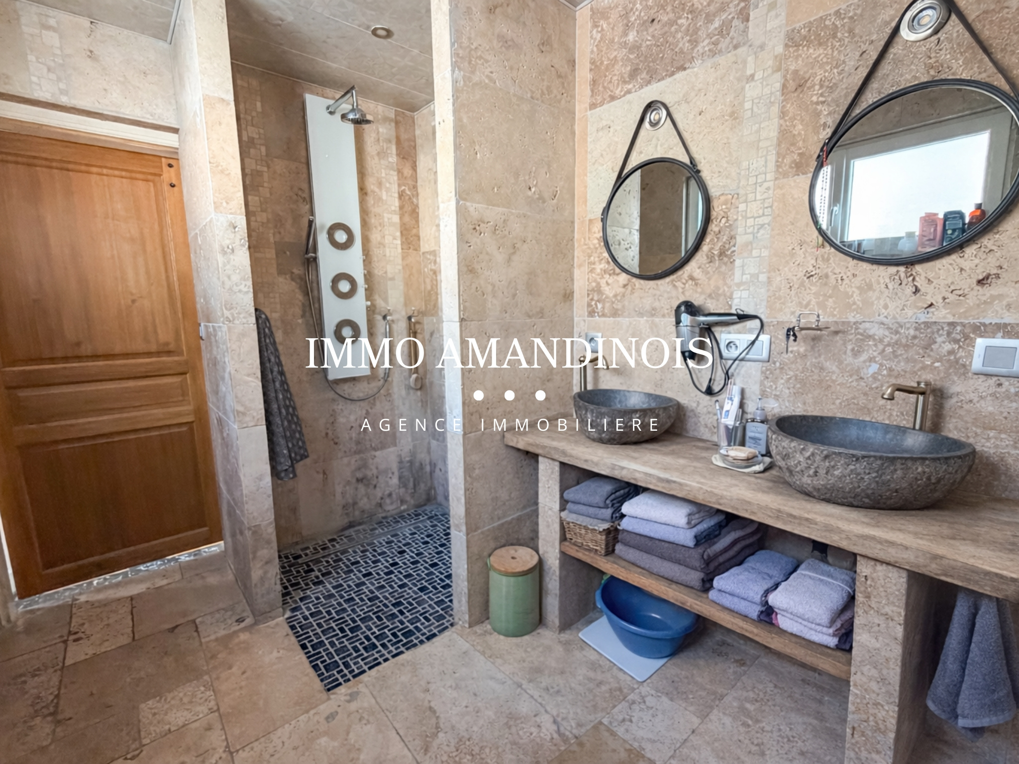 Dans la continuité, une belle salle de douches rénovée avec douche à l'italienne, ainsi qu'une buanderie / chaufferie attenante avec wc également en accès sur l'extérieur. Une cave complète également ce niveau.
