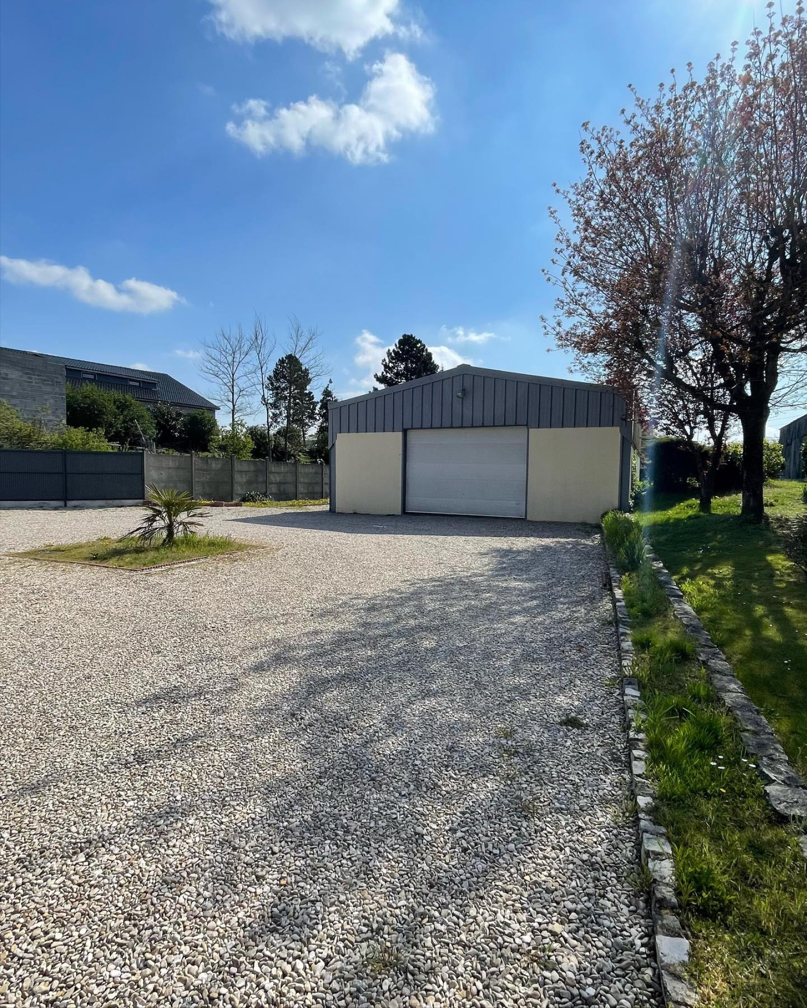 A l'extérieur terrasse, jardin clos et arboré, hangar d'environ 110 m² idéal pour plusieurs voitures ou entrepôt, parking sur la propriété.