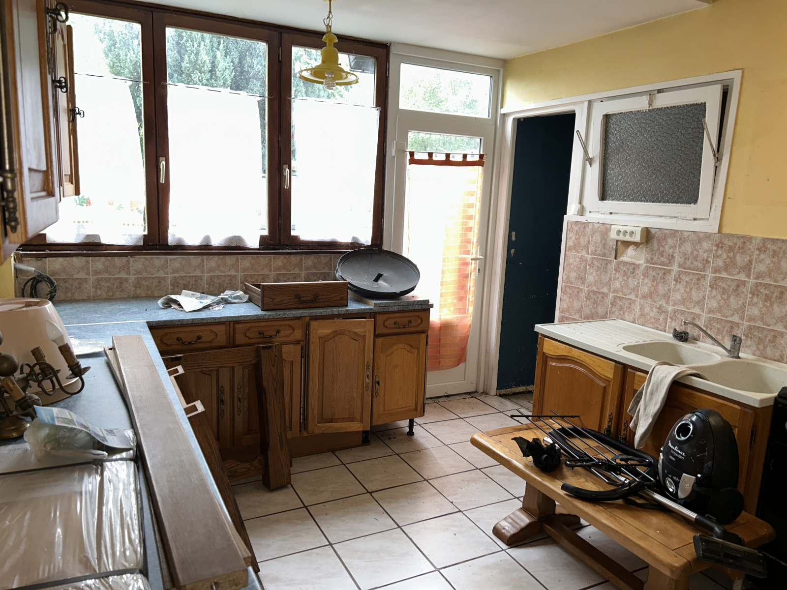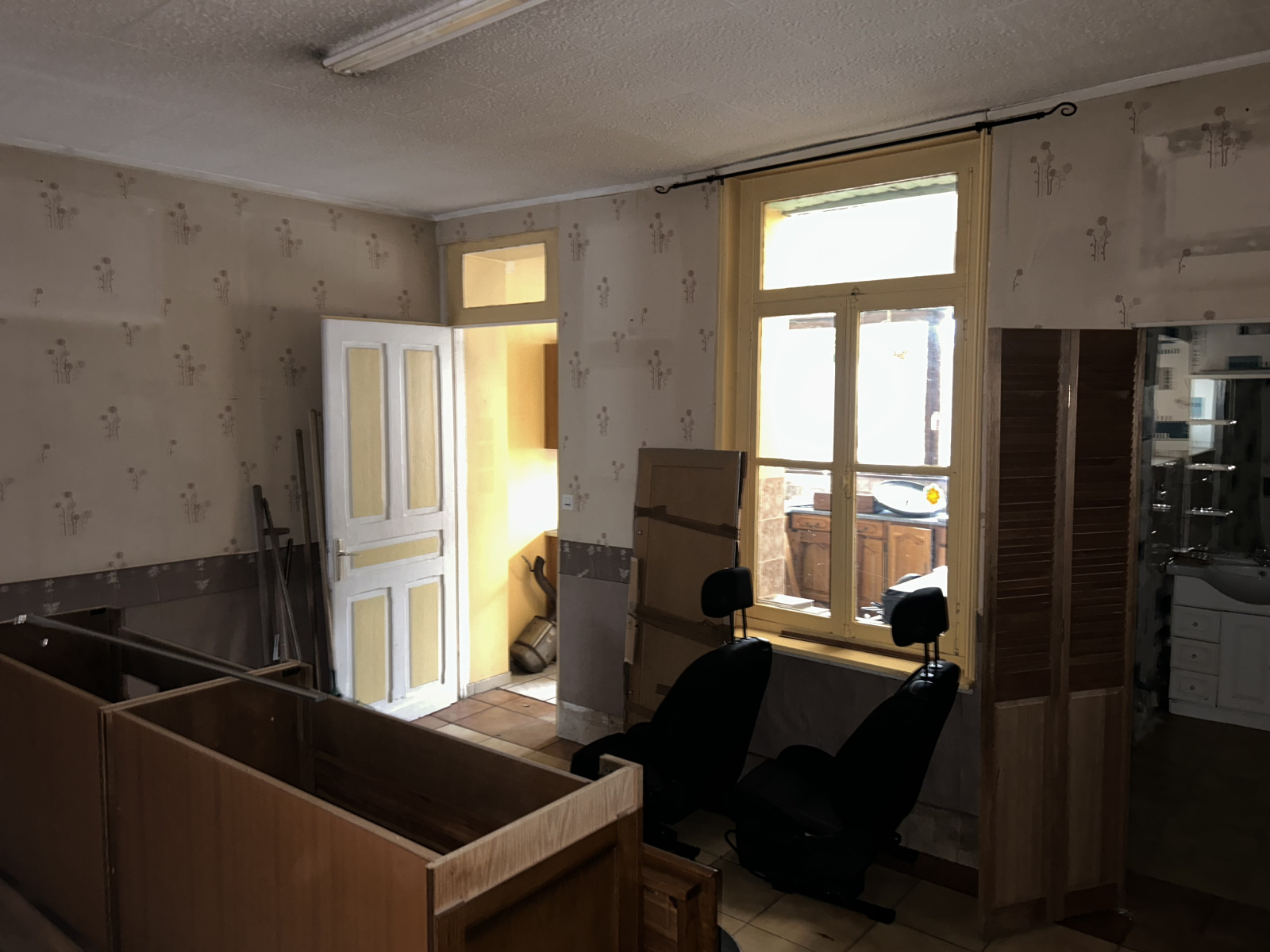 Elle se compose au rez-de-chaussée d'un couloir d'entrée desservant une première pièce de vie sur l'avant d'environ 13 m², sur l'arrière la salle à manger avec accès à la cuisine semi ouverte.