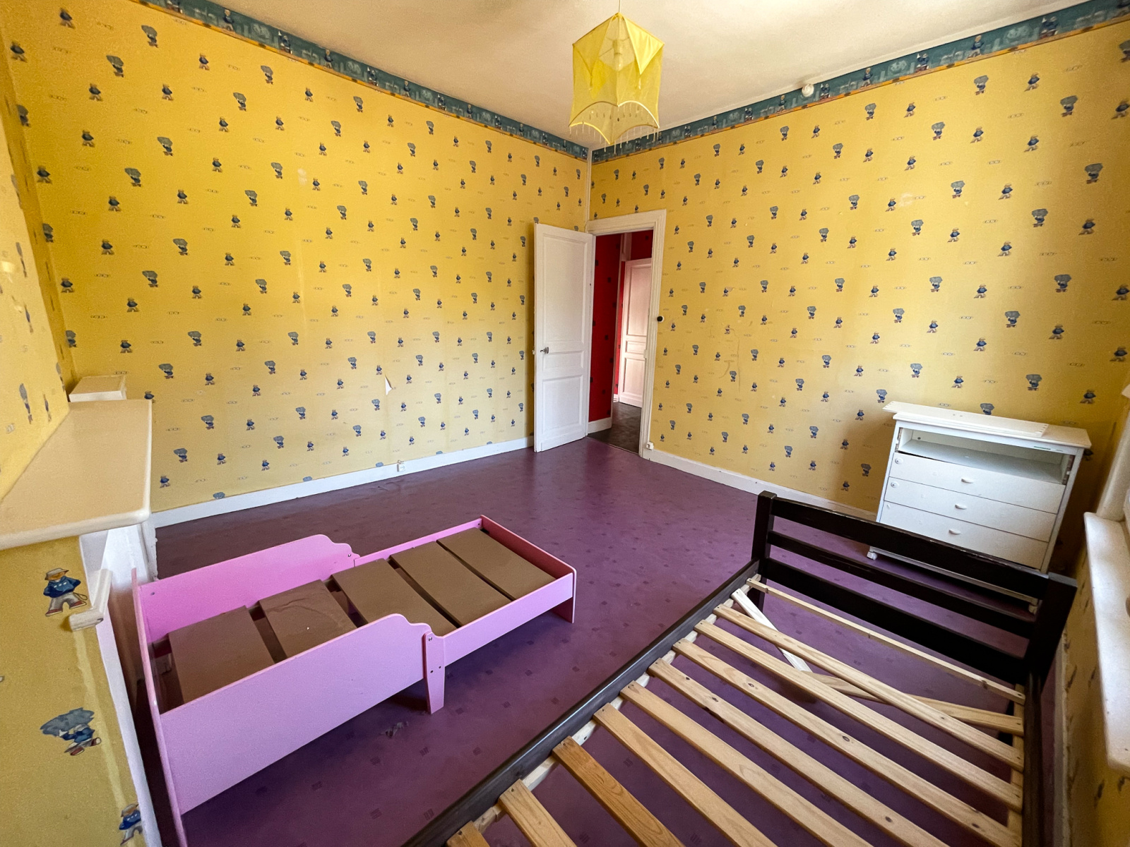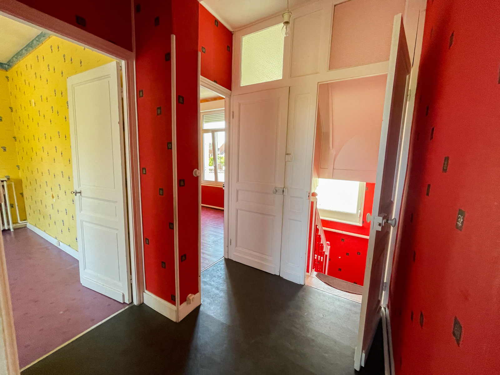 Au première étage le pallier dessert deux chambres et une salle de bains avec sanibroyeur.
