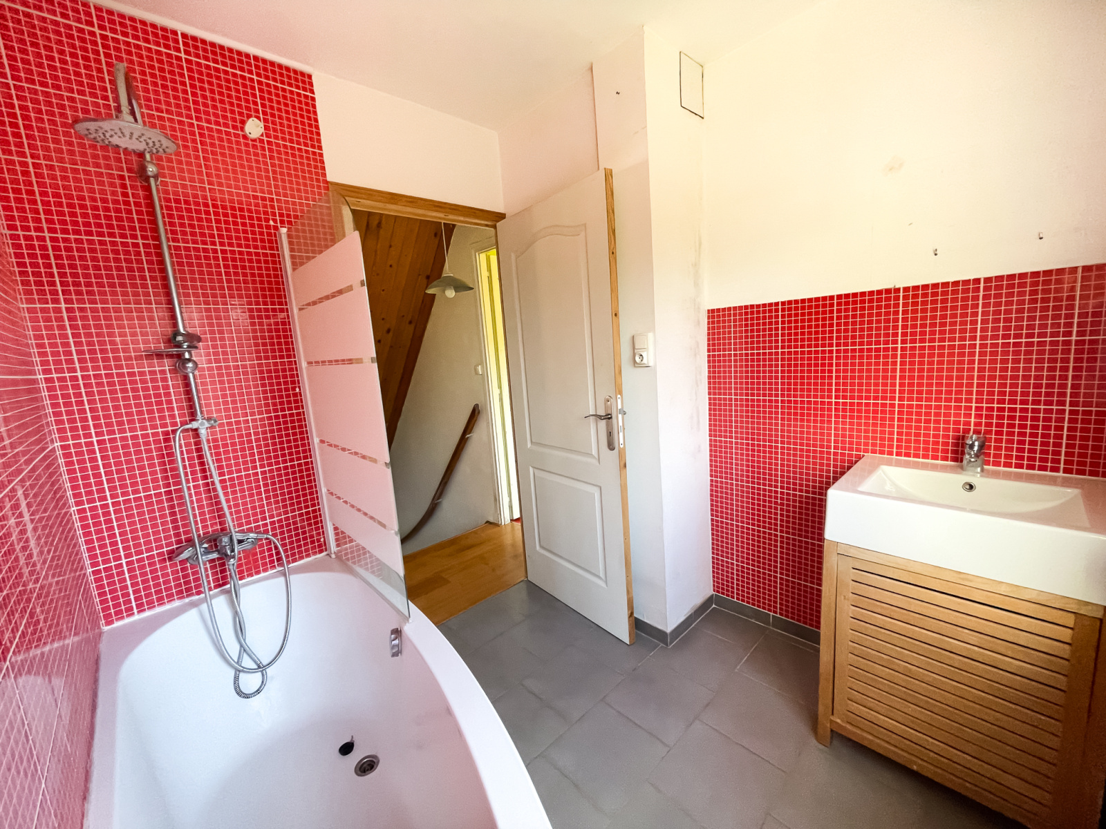 L'étage se compose d'une salle de bains équipée d'une baignoire / douche, mauble vasque, et de trois belles chambres dont une avec dressing / bureau attenant ouvrant sur un balcon.
