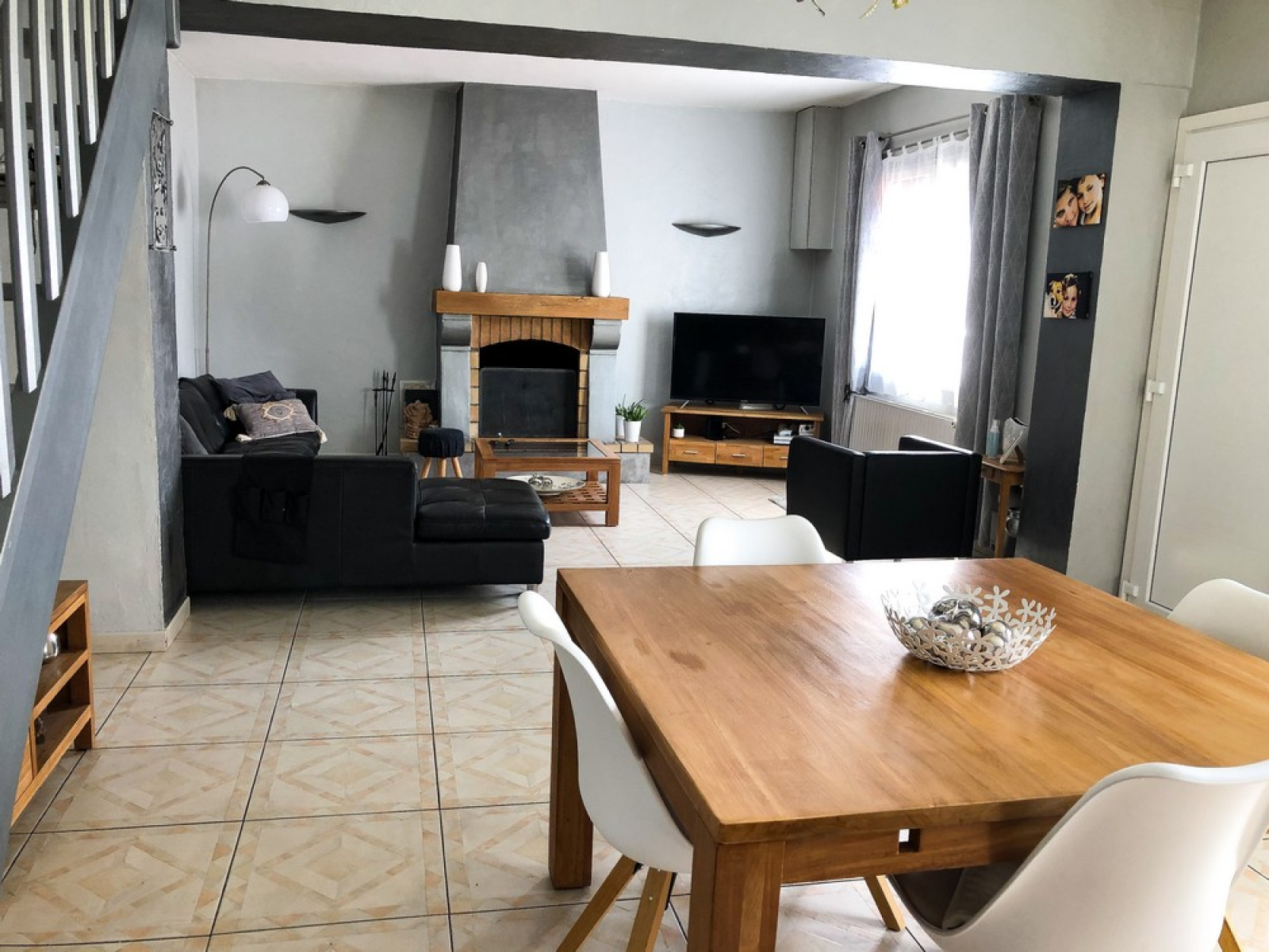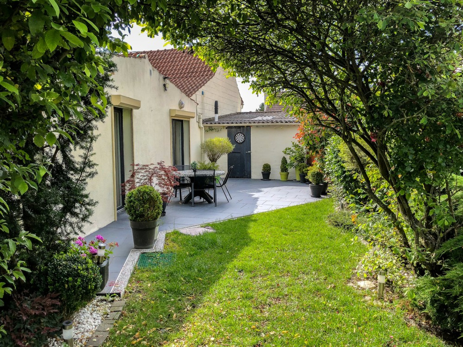 Elle se compose au rez de chaussée d'un beau séjour lumineux avec cheminée, cuisine séparée et équipée, bureau, une chambre avec dressing attenant, salle de bains avec douche et baignoire, W-C indépendant. A l'étage 2 chambres. Cave. Terrasse, jardin cos et arboré, garage.