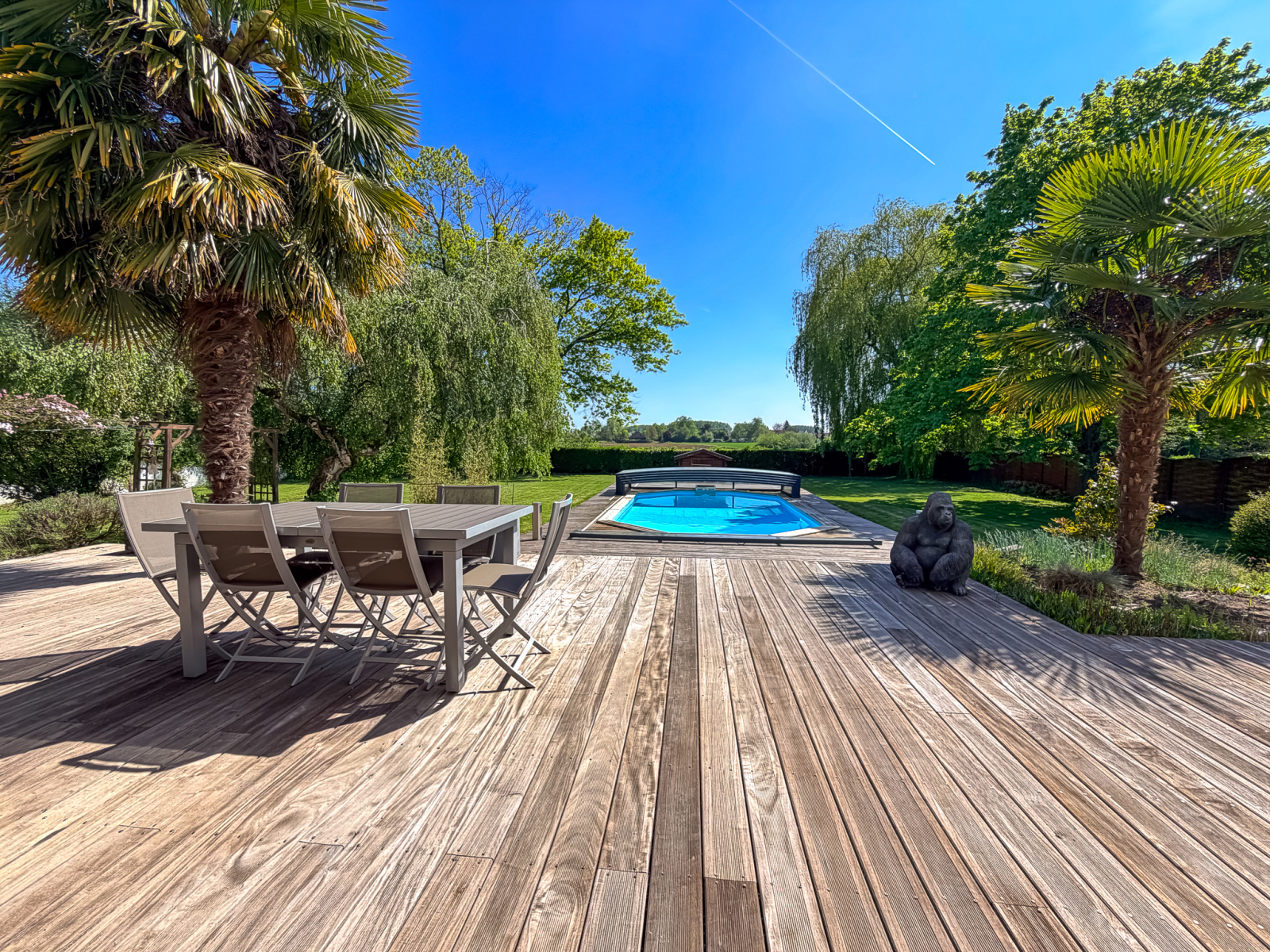 À l’extérieur, une superbe terrasse de plus de 60 m² avec piscine chauffée invite à la détente, tout en offrant une vue imprenable sur le jardin paysagé, soigneusement entretenu et sans aucun vis à vis.