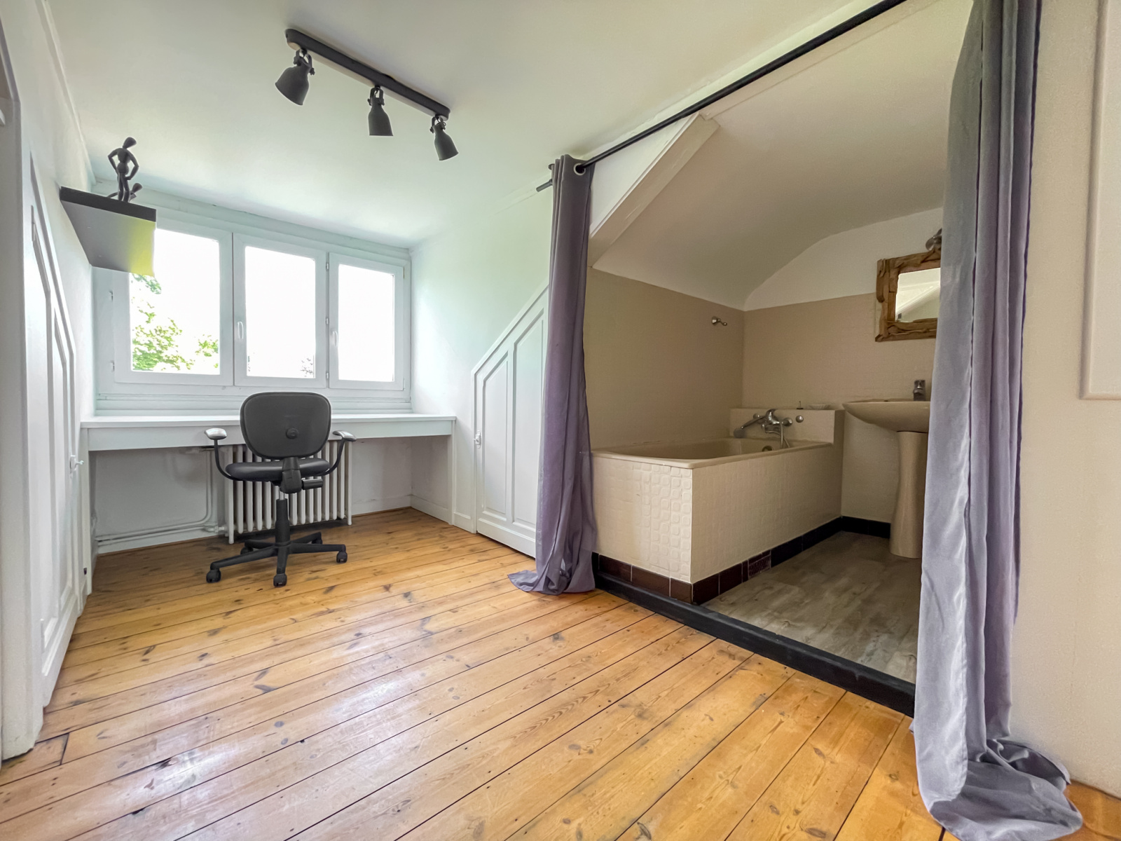 Au deuxième étage, un bureau ou salle de douches à aménager (arrivées d'eaux présentes) de 8,43 m² et deux autres chambres de 25,70 m² et 16,42 m², dont une disposant d'un dressing et de son propre espace salle de bains.