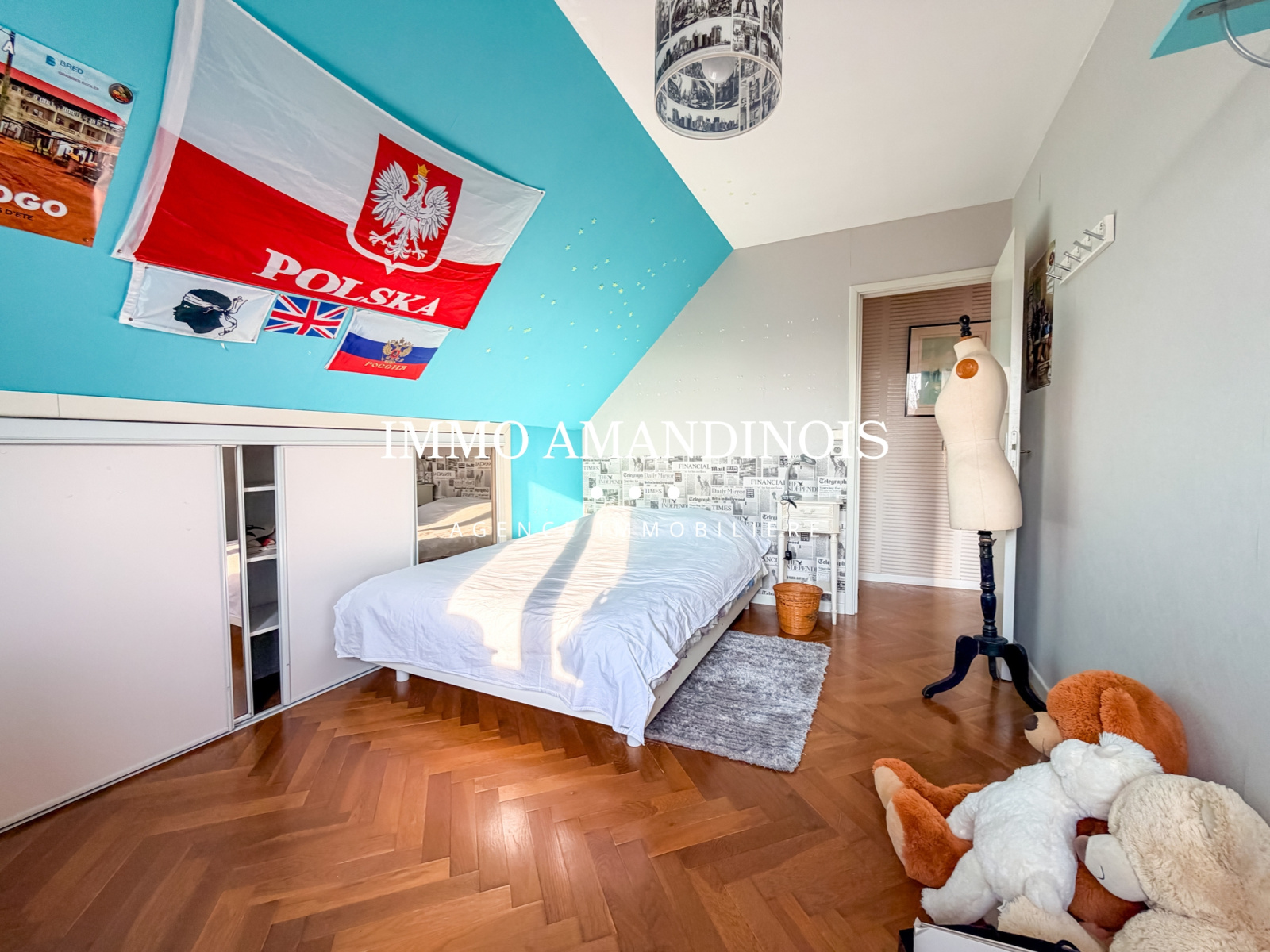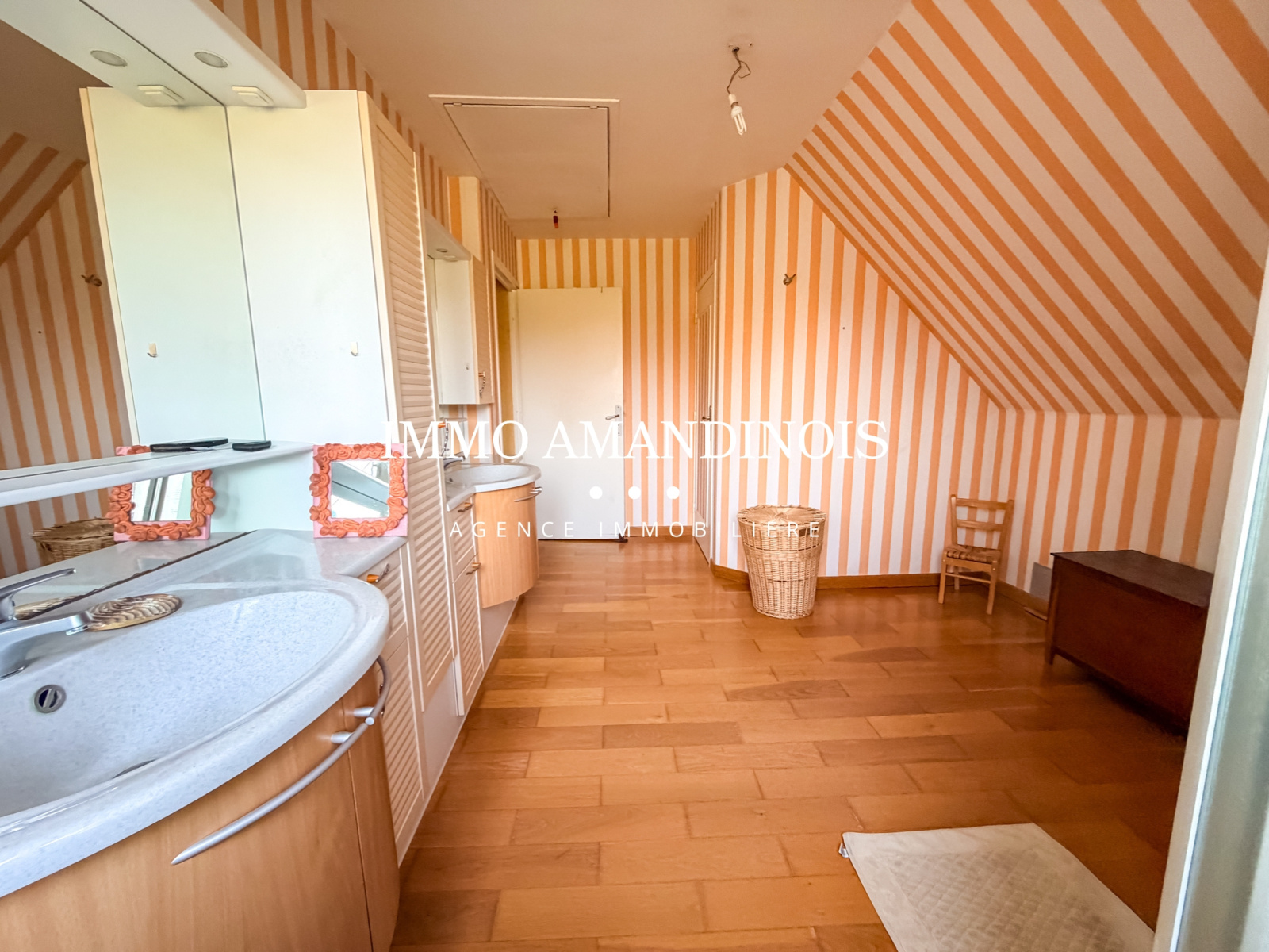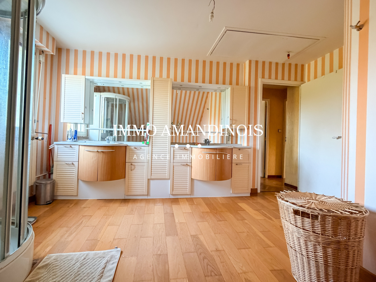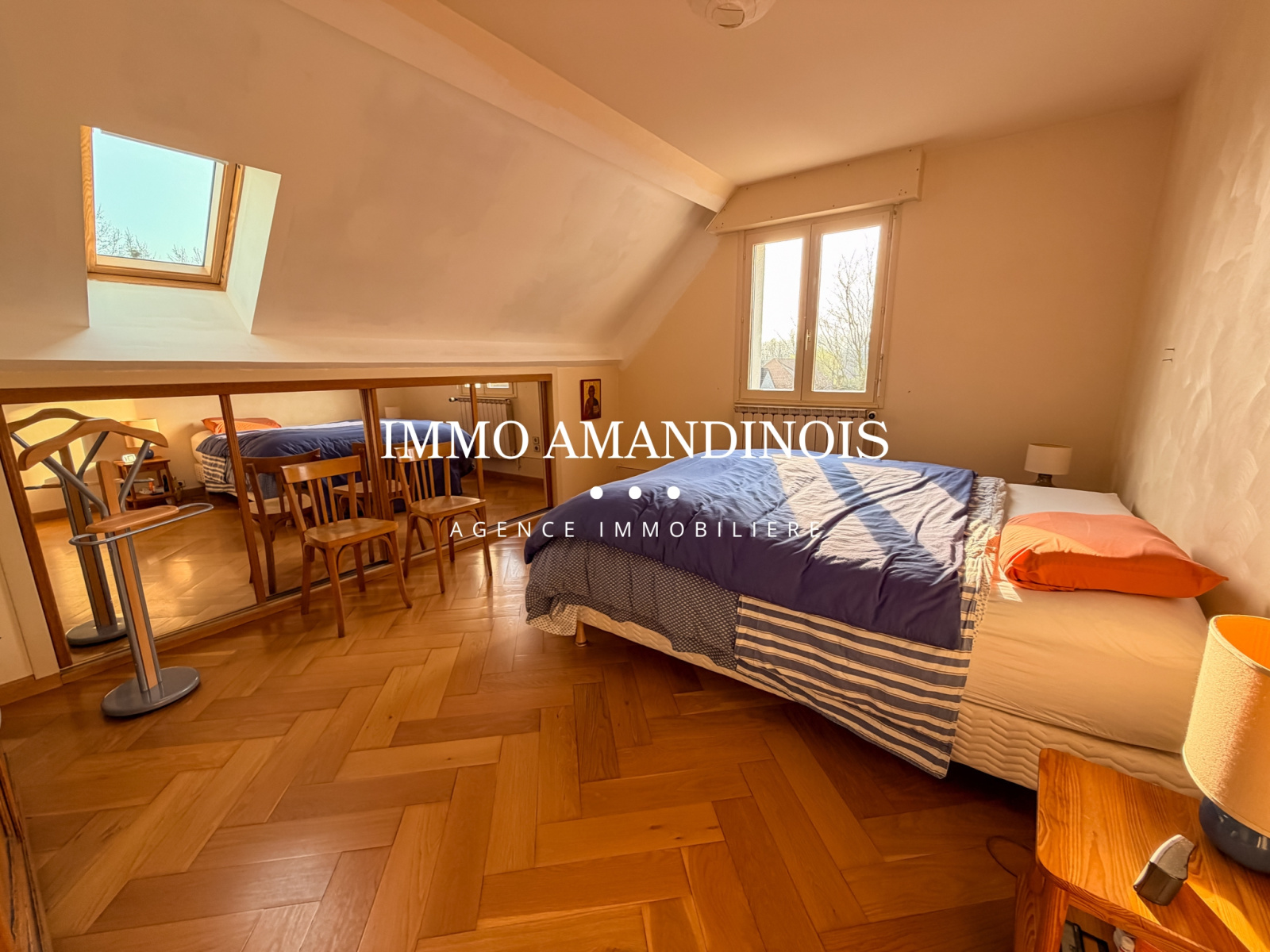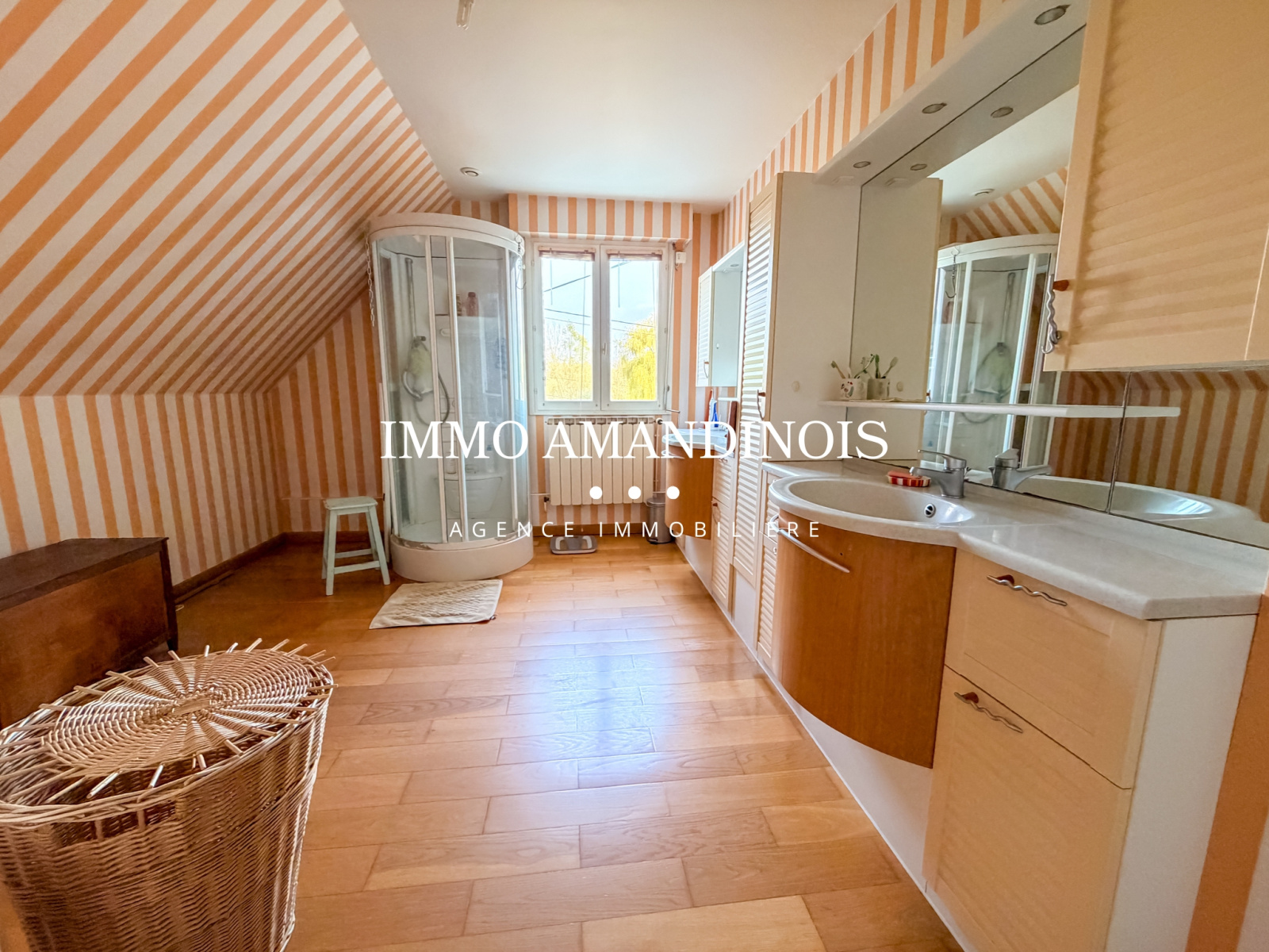 À l’étage, l’espace nuit se compose de 4 belles chambres, d’une salle de douche avec WC, d’un dressing et de nombreux rangements intégrés.