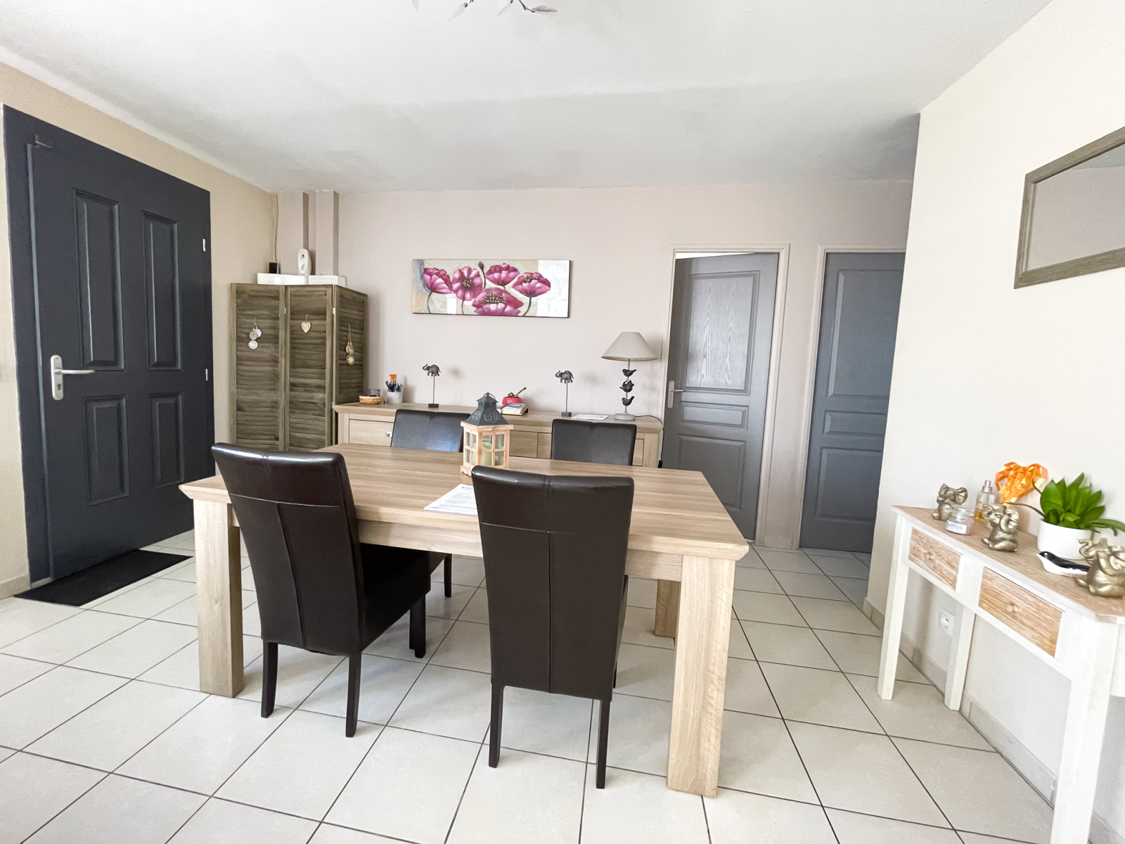 Elle se compose comme suit : Séjour lumineux de 30 m², cuisine ouverte et équipée avec accès direct sur la terrasse, buanderie attenante.