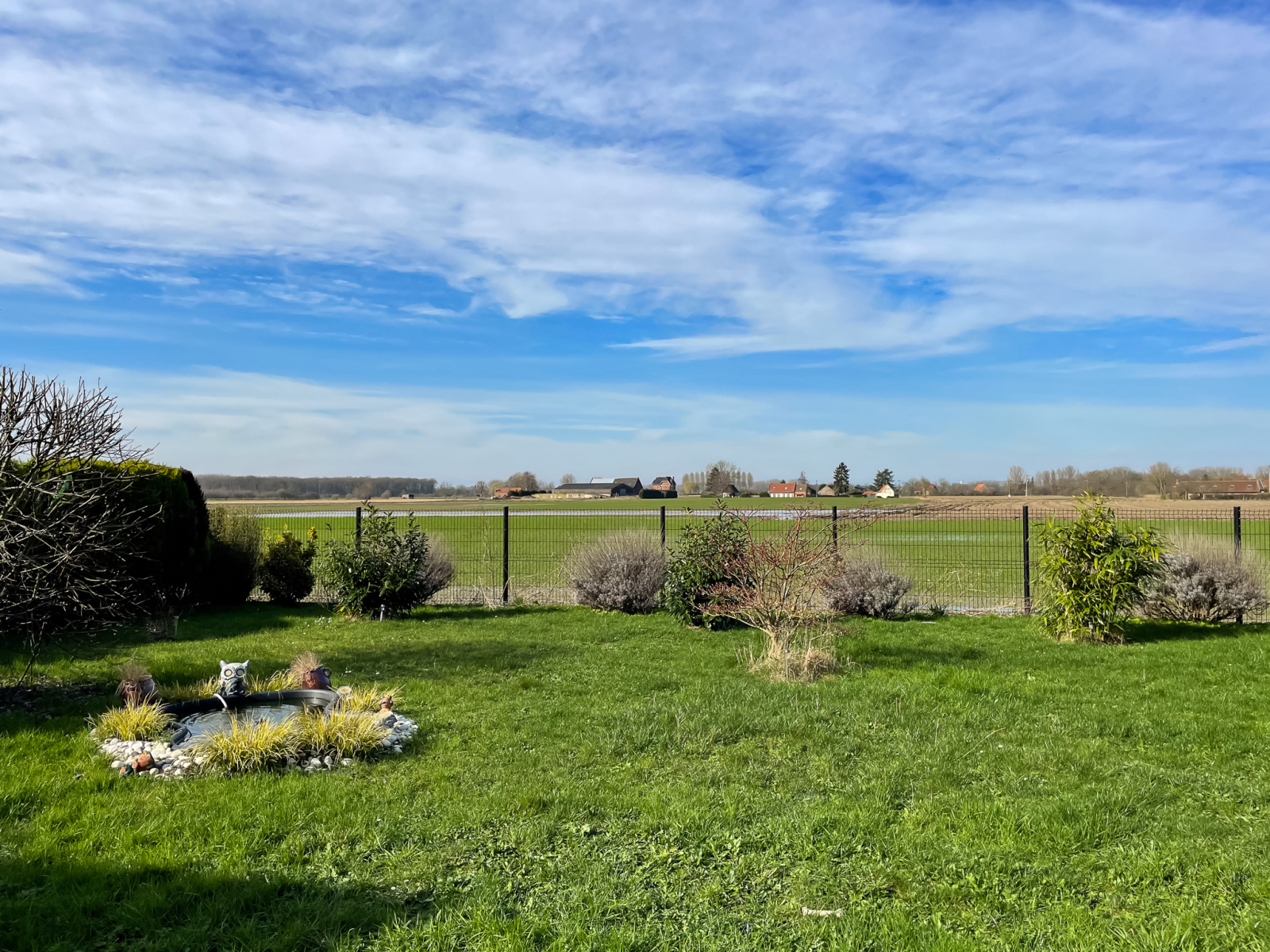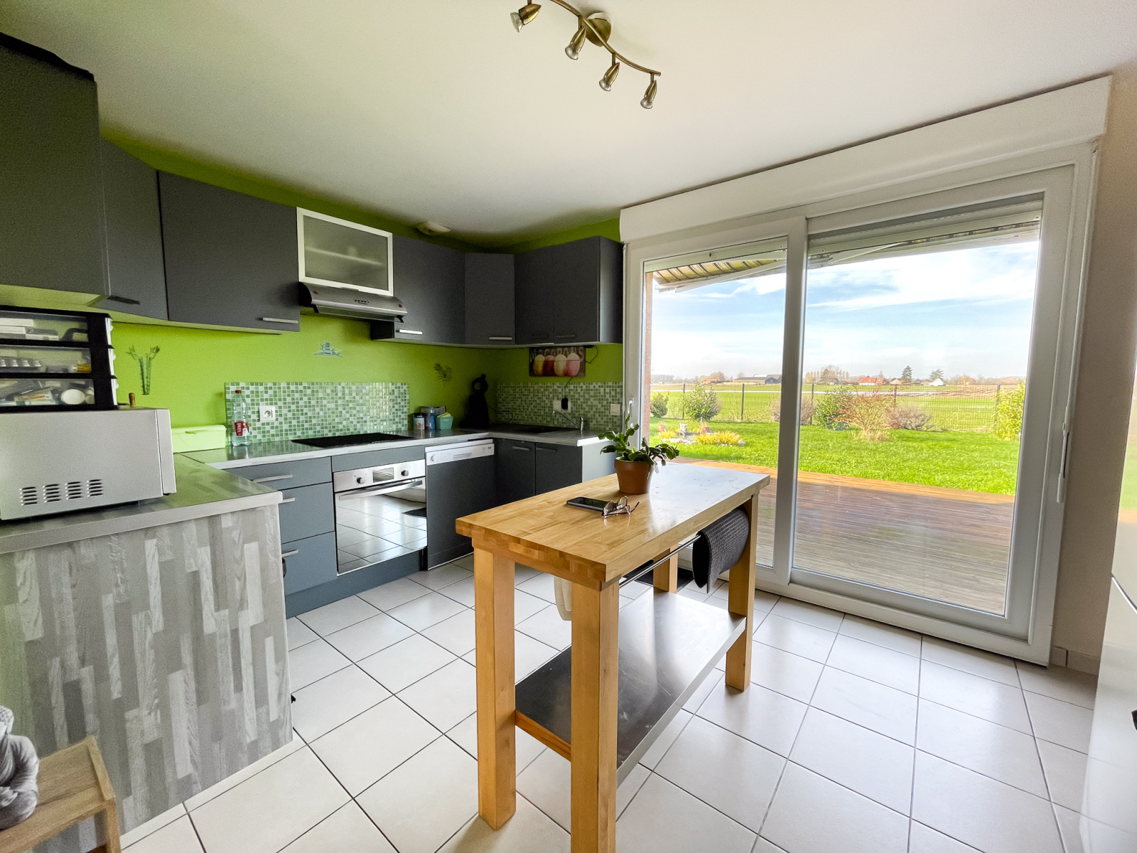 A l'extérieur grande terrasse avec store, superbe jardin clos et arboré sans vis à vis, vue imprenable sur les champs, citerne de 10 000 litres, passage sur le côté, parking sur la propriété.