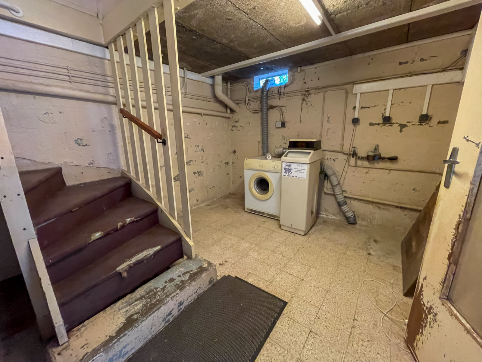 Sous-sol complet : garage, lingerie, atelier, chaufferie.
