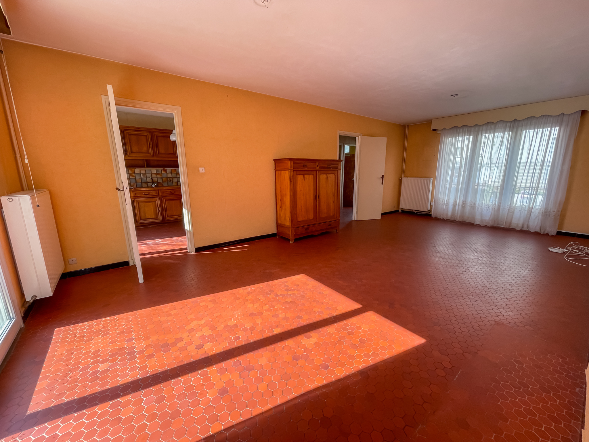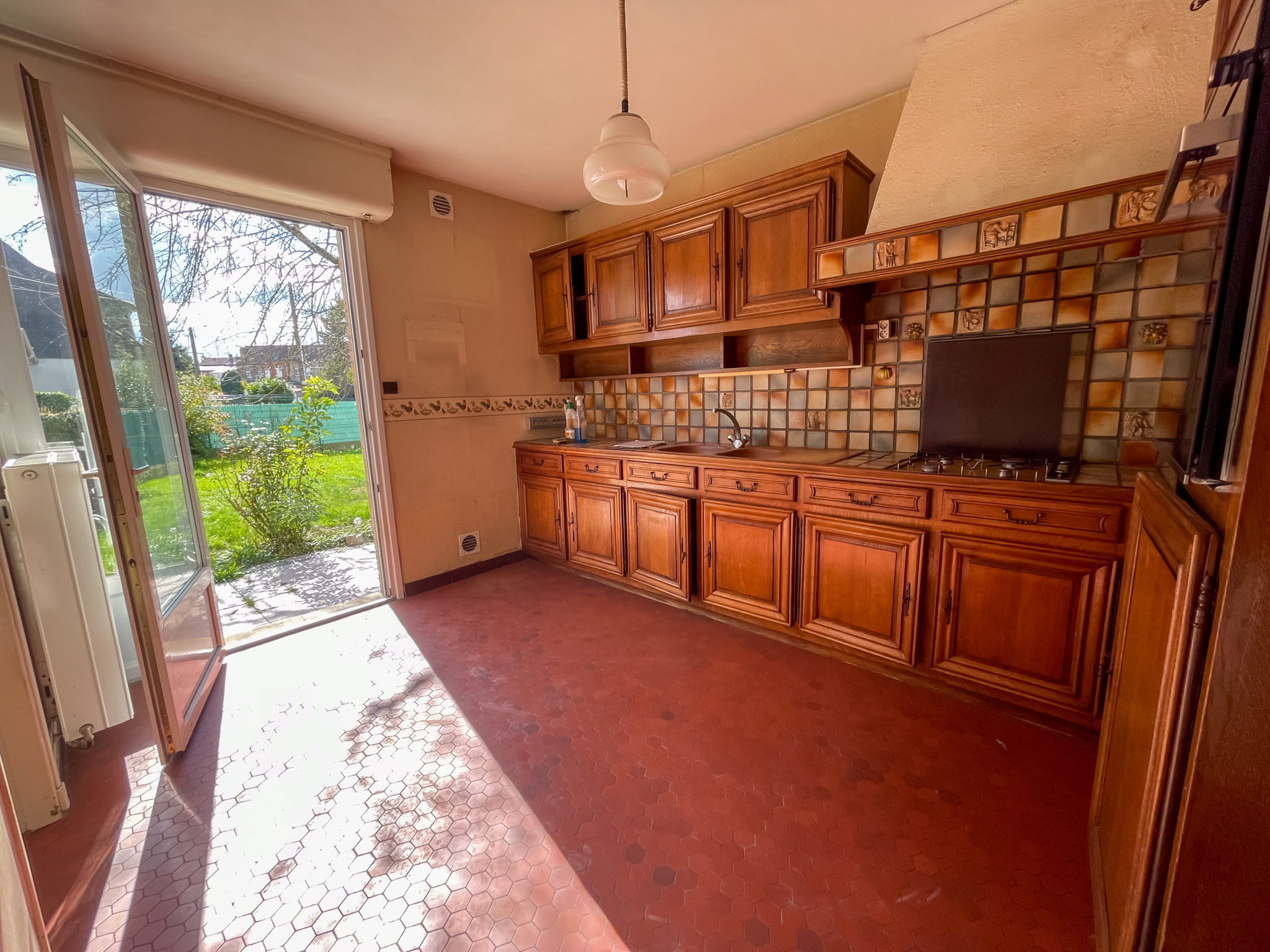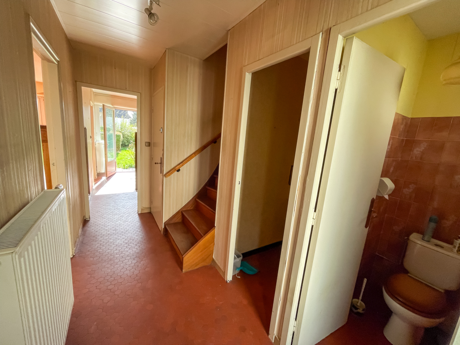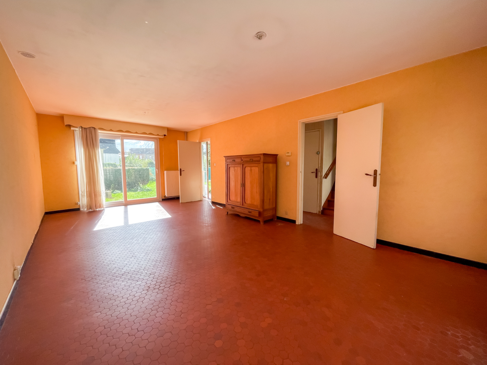 Rez-de-chaussée : hall d’entrée, WC, séjour traversant lumineux, cuisine équipée.
