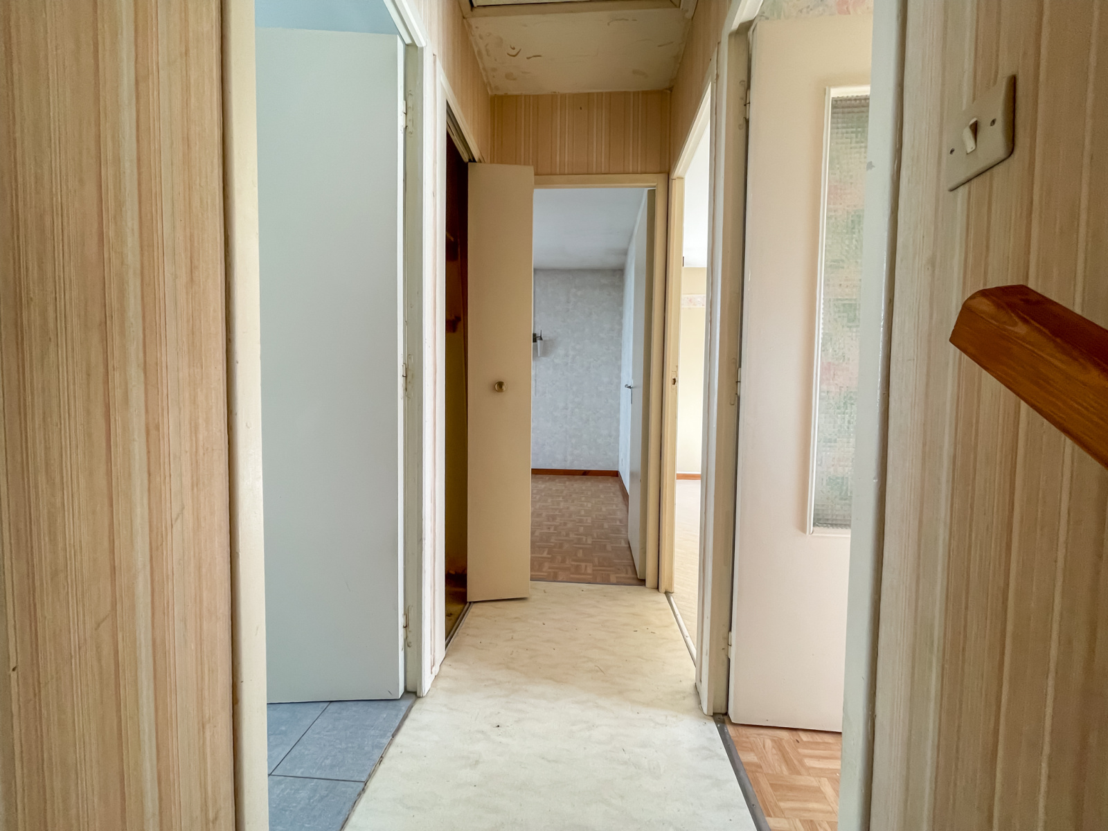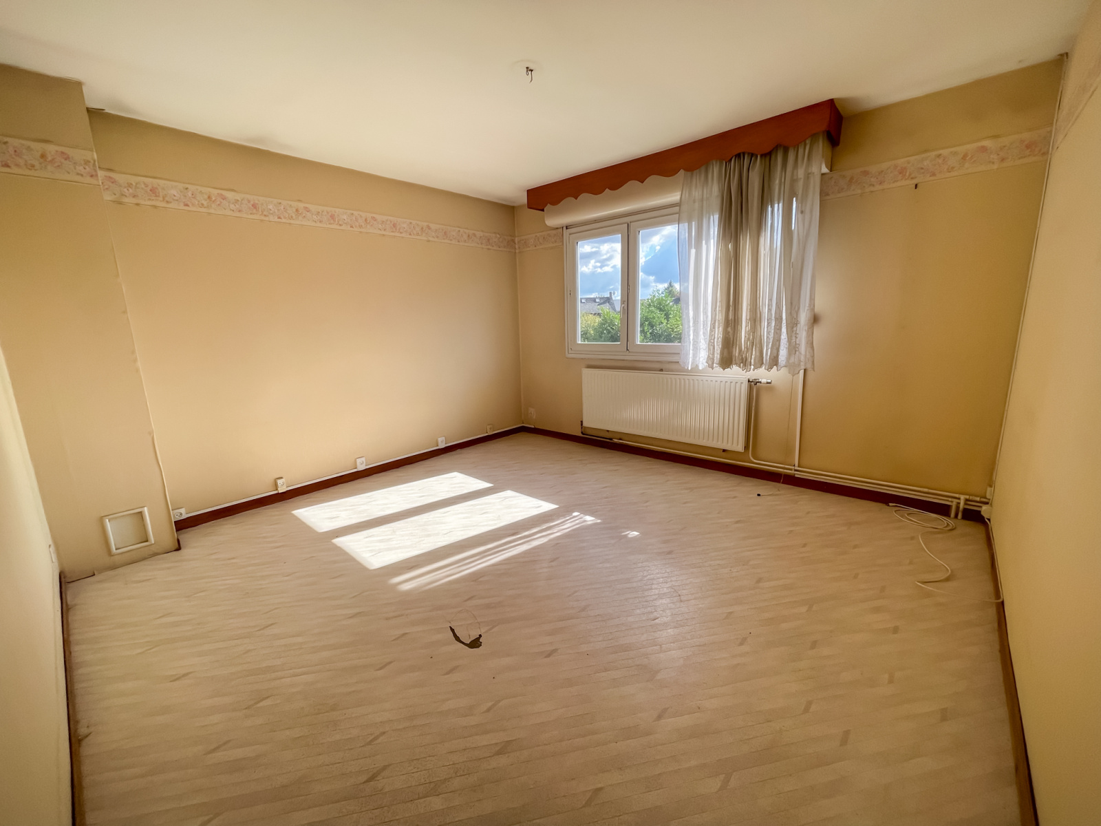 Étage : couloir desservant 3 chambres spacieuses, salle de bains avec WC.