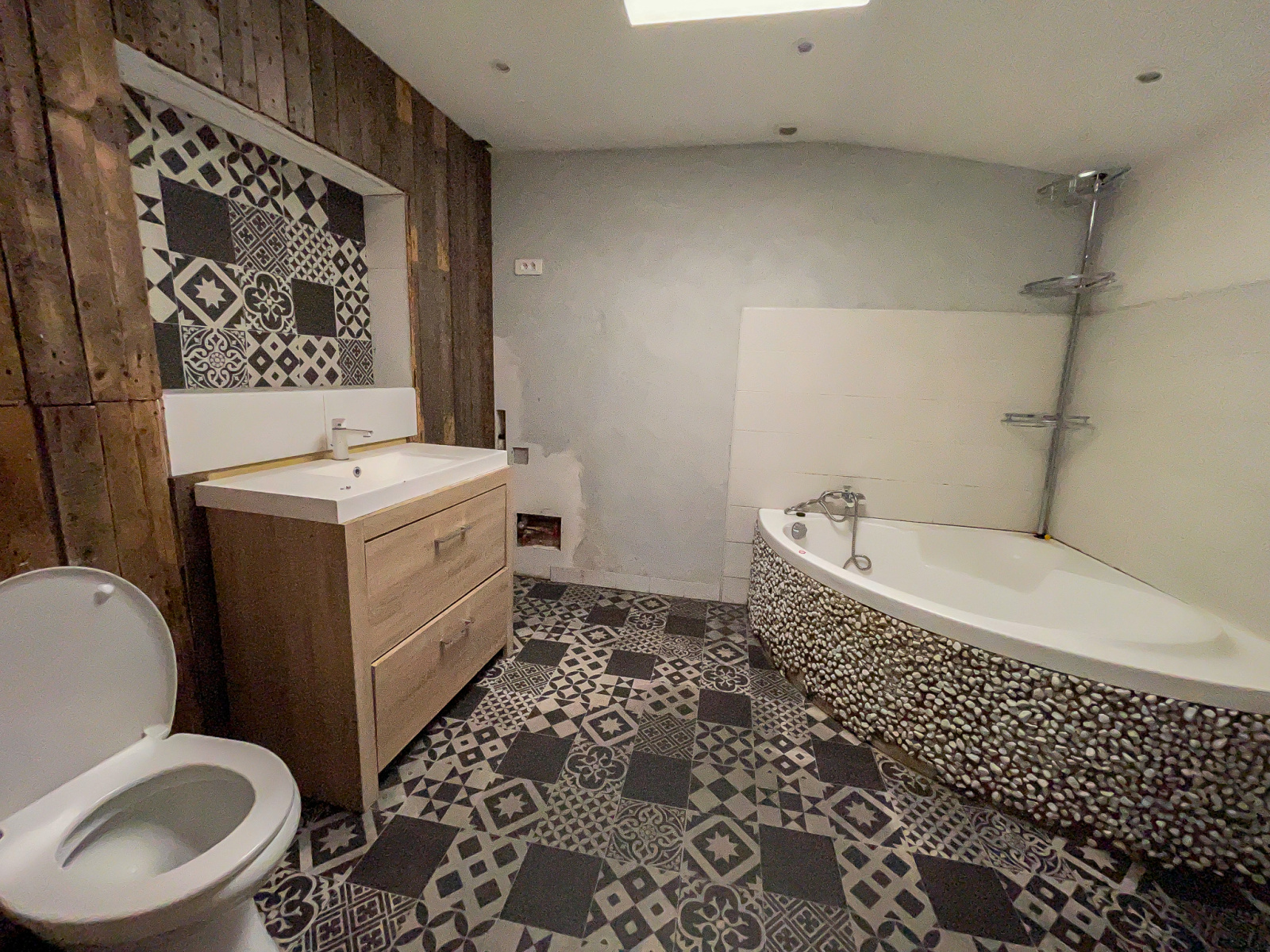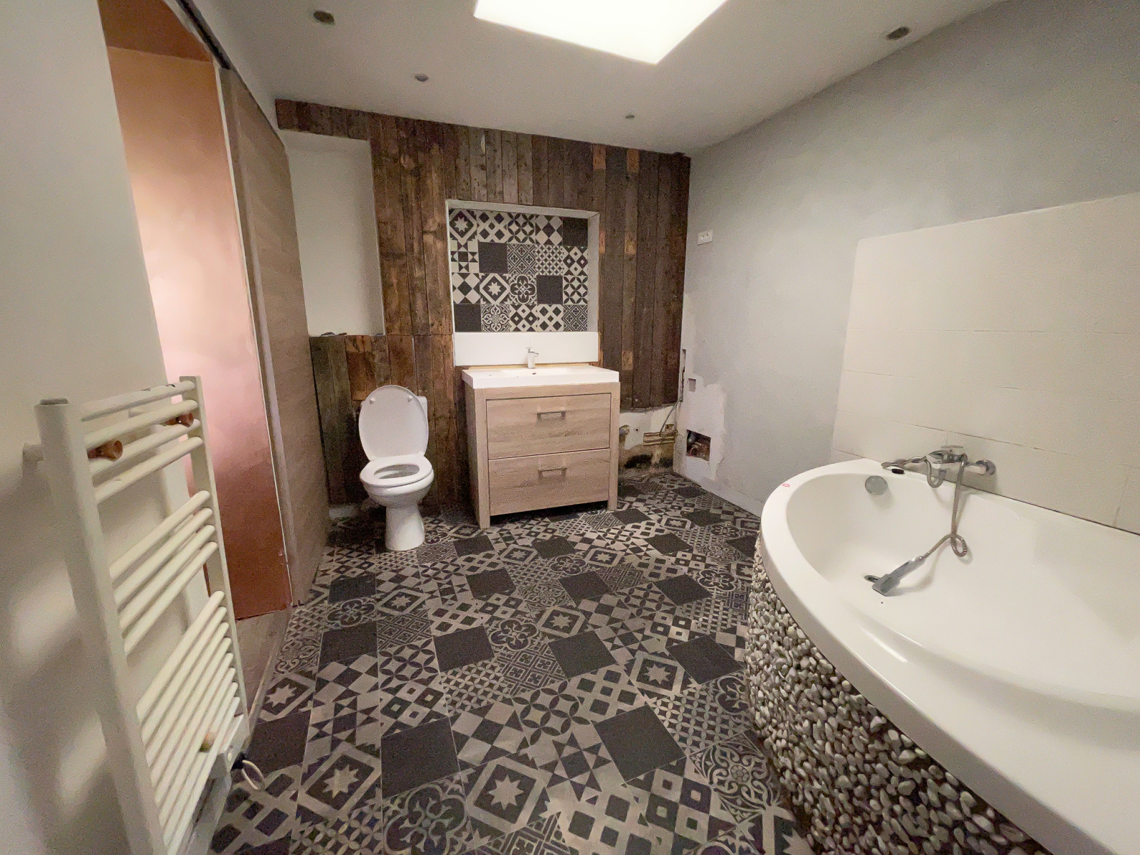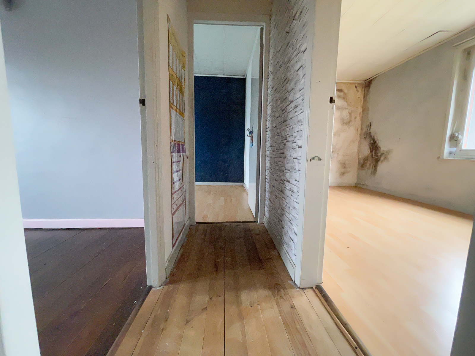 Dotée d'un superbe potentiel, elle se compose au rez-de-chaussée d'un hall d'entrée, une pièce de vie avec possibilité de créer une cheminée (conduit existant), cuisine ouverte, salle de bains avec W-C, un chambre. Cave. A l'étage le palier dessert 2 chambres et un bureau. Accès aux combles.