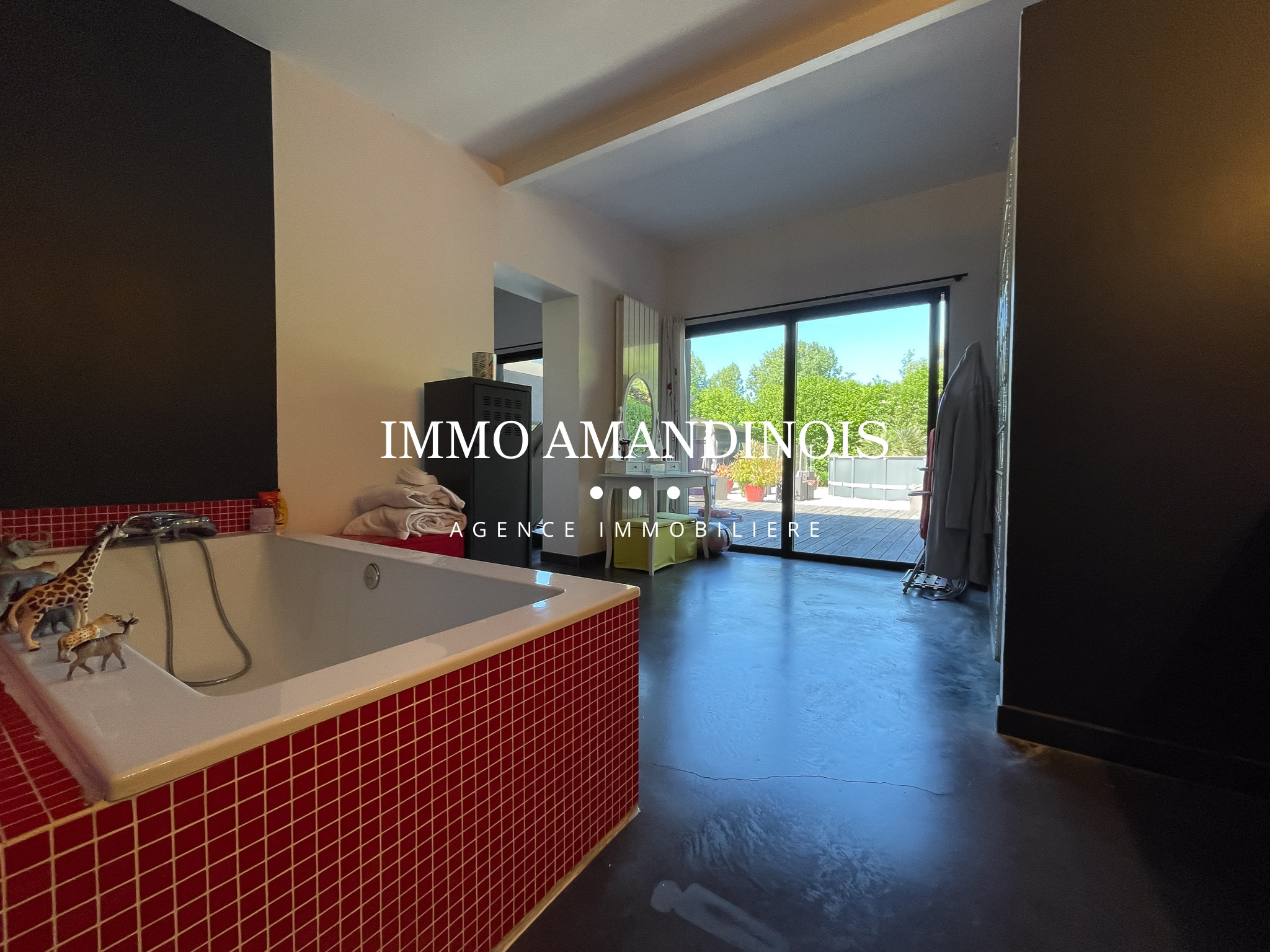 L'espace de vie est complété par une cuisine indépendante de 40 m² avec espace dînatoire ouvert sur l'extérieur. Une pièce de 25 m² y est attenante comprenant une porte de service sur l'extérieur ainsi que l'accès à la cave, salle de sport, atelier, profession libérale, cellier, ... c'est vous qui voyez !