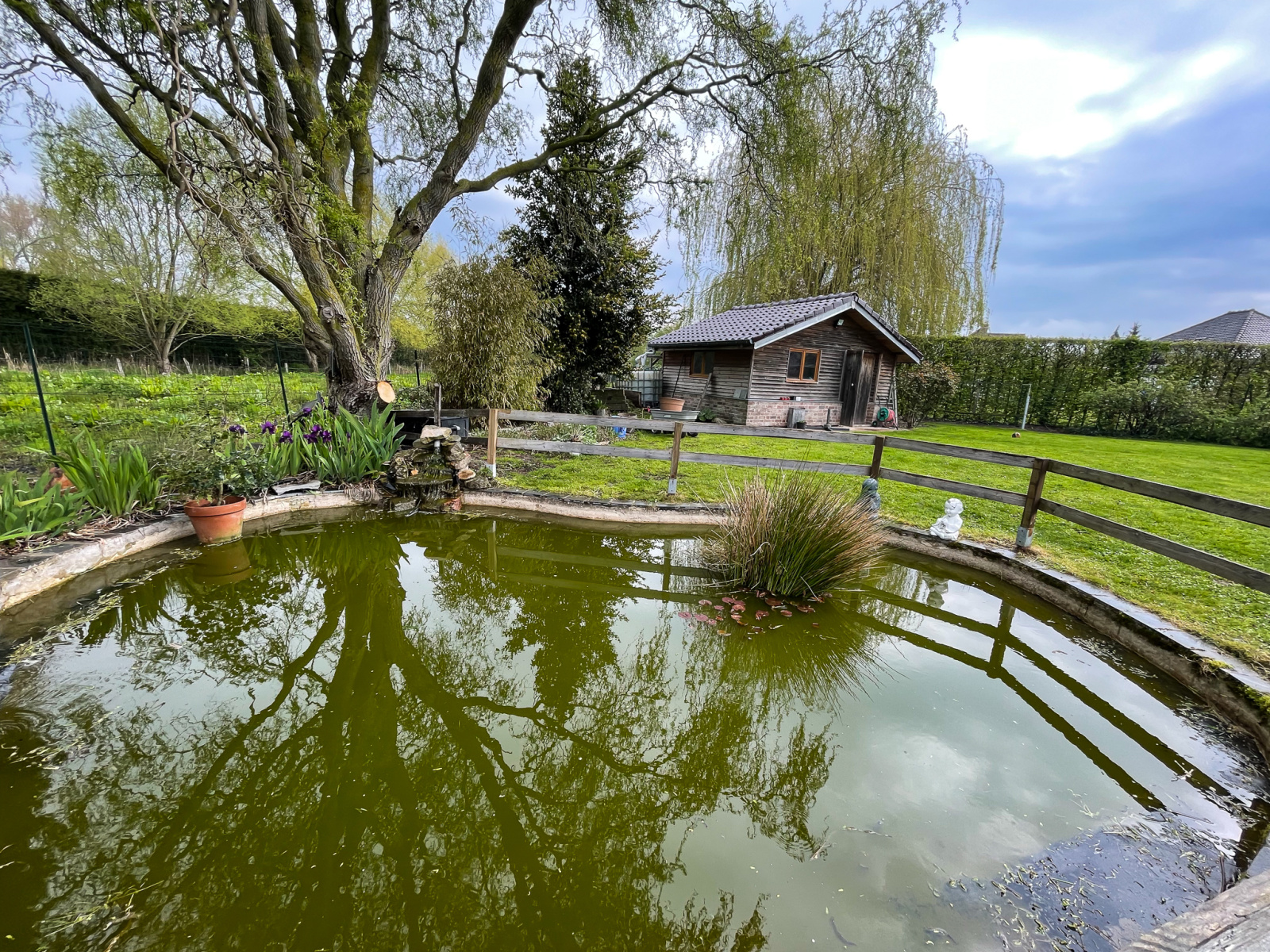 Le jardin clos et arboré dispose d'une piscine ronde hors sol, de deux belles terrasses carrelées et d'un bassin.